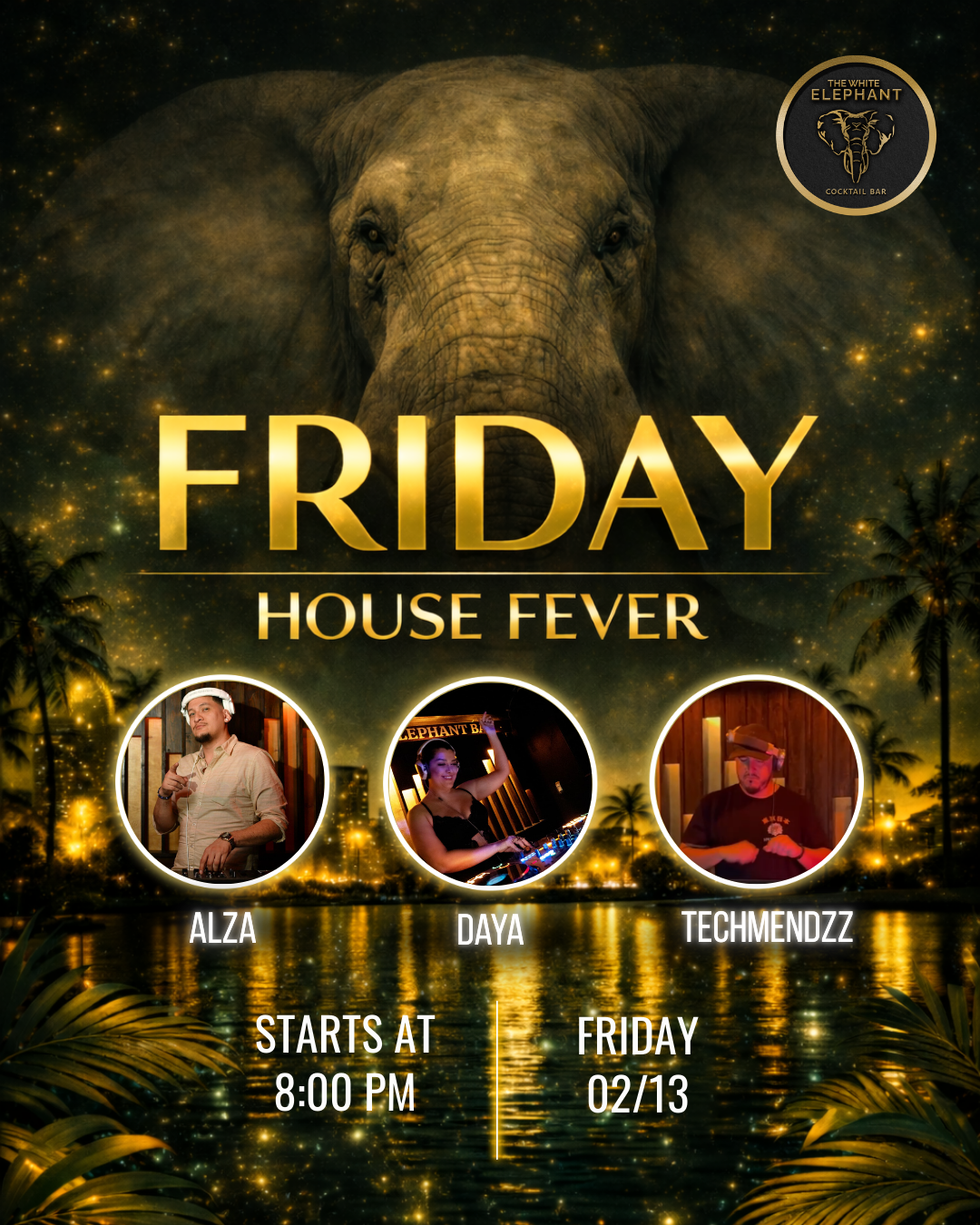 Featuring DJ Daya, DJ Alza, and DJ Tech Mendez, expect groove-driven house energy and clean transitions that keep the room moving.